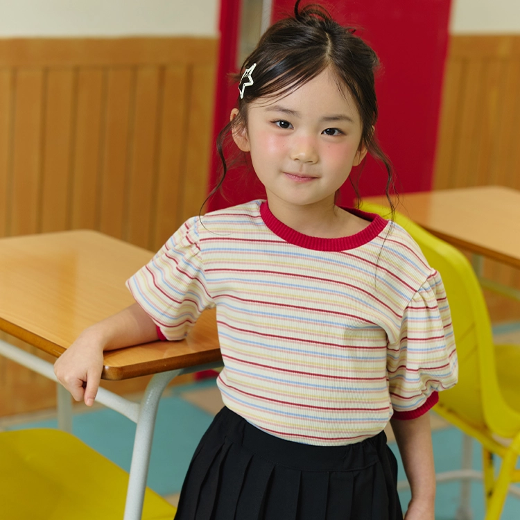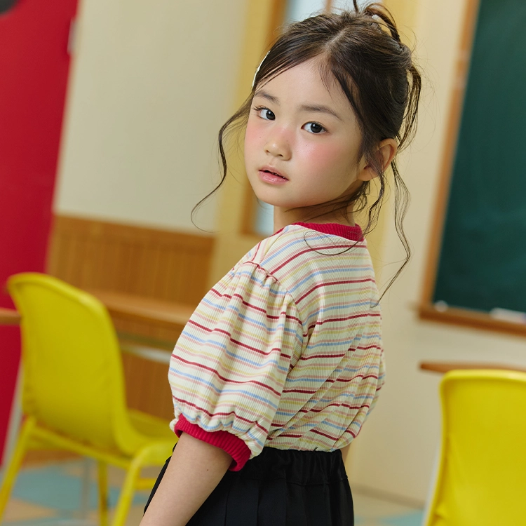 도도가 이번 시즌 새로이 선보이는 스타일의 제품으로, 우아한 실루엣과 발랄한 색감으로 우아하고 깜찍한 분위기를 모두 잡는 여아용 반팔 티셔츠입니다.