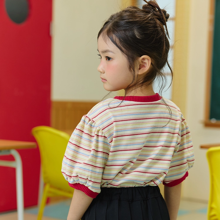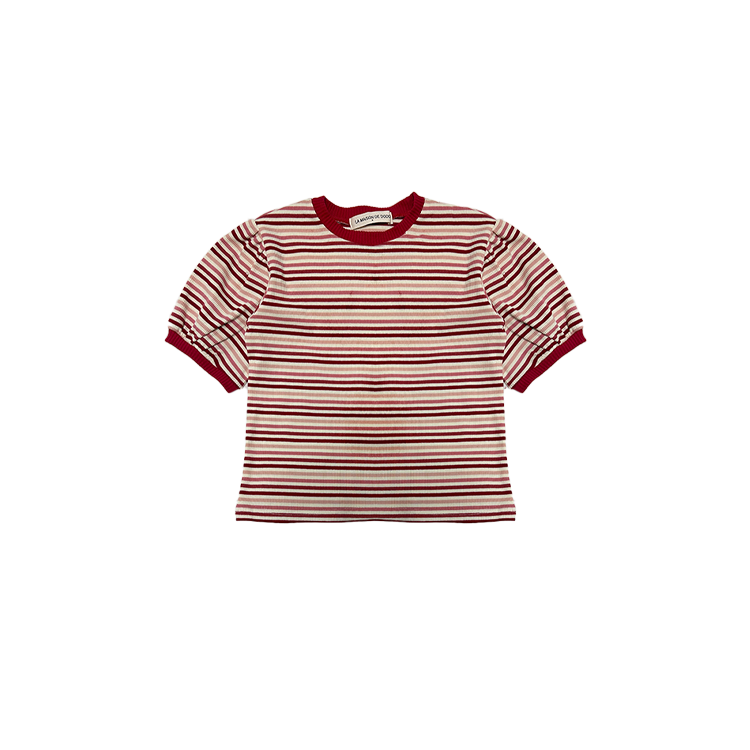 ABOUT BASIC Puff Stripe T Shirt ( Red / Mixed Color )