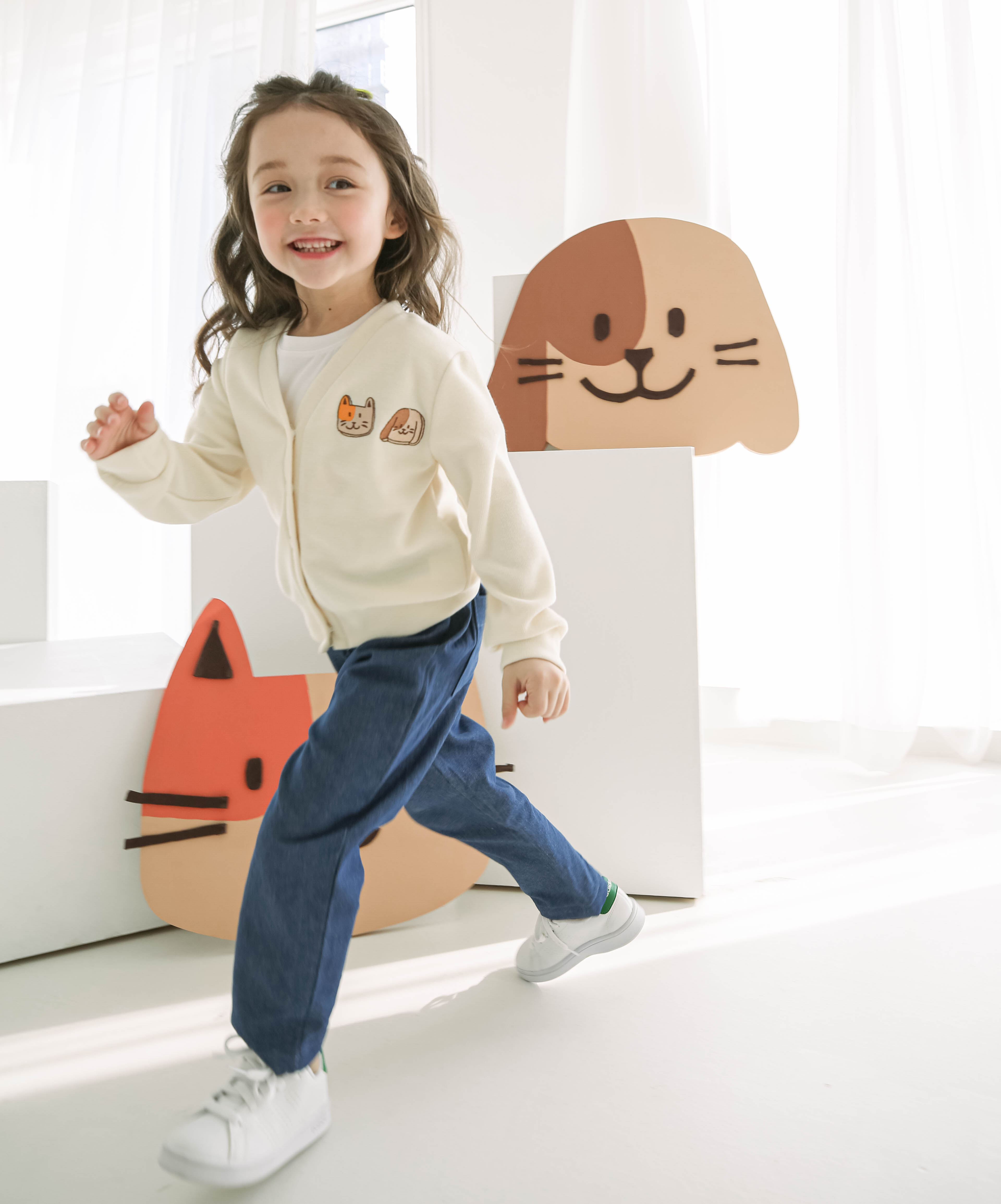 기장감이 조금 있는 정핏입니다. 롤업하여 연출하시면 더욱 세련되고 귀엽게 착용 가능합니다.